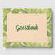 Un libro de bodas tropicales con un borde de plantas tropicales verdes, helechos y hojas de palma que rodean un centro de color rubor (o albaricoque), con la inscripción "Guestbook". Todo se puede personalizar.