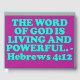 LA PALABRA DE DIOS ESTÁ VIVIENDO Y PODEROSA. - Hebreos 4:12. De la Biblia de Estudio de Ginebra: Porque la palabra de Dios es rápida, poderosa, y más aguda que cualquier espada de dos filos, penetrando hasta el asno divisorio del alma y el espíritu, y de las articulaciones y la médula, y es un discernidor de los pensamientos e intenciones del corazón. (4) Una amplificación tomada de la naturaleza de la palabra de Dios, tan poderosa que llega hasta las partes más profundas y secretas del corazón, hiriendo fatalmente a los tercos y resucitando abiertamente a los creyentes. e) La doctrina de Dios que se predica tanto en la ley como en el evangelio. f) Llama a la palabra de Dios que vive, por el efecto que tiene en aquellos a quienes se predica. (g) Llama a la silla del alma de las emociones. h) Por espíritu, se refiere a la mente. ¡Pide tu copia del libro de invitados con la hermosa imagen de este versículo de la Biblia hoy!