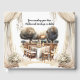 Las cortinas blancas, con un suave tapiz de teatro, están recubiertas de una bonita flor floral blanca, y las velas están colocadas en la base. Las cortinas forman un marco alrededor de una acuarela de una mesa cuadrada de madera con sillas, un mantel blanco y una vajilla y cubiertos de calidad. Los farolillos brillan por encima de la mesa y al fondo se ven dos árboles de pompa. Este elegante diseño es ideal para un país, boho, toscano, italiano, viñedos o boda íntimo e informal, y se adapta a los restaurantes, restaurantes y restaurantes de alto nivel.