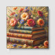 This guestbook features a colorful botanical painting of a stack of four vintage books crowned with vibrant wildflowers, creating a delightful blend of literary charm and nature’s beauty.