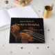 Personalice o elimine fácilmente el texto de este impresionante libro de invitados para fiestas de cumpleaños que presenta un elegante y antiguo pergamino de violín.
