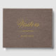 Libro de visitas con fondo de cuero falso marrón y texto de color dorado. Visitantes está en una fuente de escritura elegante y un adorno vintage separa eso de las palabras Libro de visitas. O edite el texto como desee. Déle a su invitado un libro elegante para firmar.
