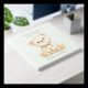 Celebrate your baby shower with a personalized guest book that exudes luxury and charm. This watercolor teddy bear with a sage-green bow tie is a great option.