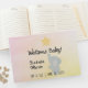 El original libro de visitas Sip & See recién nacido / baby ducha incluye elefante bebé con estrellas y texto de personalizable completo sobre fondo de degradado pastel.
