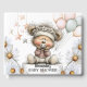 Celebrate the joy of new beginnings with this charming baby shower design featuring a cuddly teddy bear in a floral headband, nestled among cheerful daisies and pastel balloons. Soft colors and starry accents create a dreamy, gender-neutral theme perfect for invitations, party décor, and keepsakes. Customizable for any baby celebration, this sweet illustration brings warmth and whimsy to every detail.