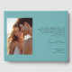 Turning to the back cover, a soothing teal background sets the stage for a heartfelt display. On the left, a cherished photo of the couple captures a moment of love and joy, serving as a timeless reminder of the day's magic. On the right, a customizable text area awaits, offering the couple an opportunity to express their gratitude, share special memories, or convey warm sentiments to their guests. Beneath this, the couple's names, along with the date and location of the event, provide a final touch of personalization, ensuring that this guest book becomes a treasured keepsake for years to come.