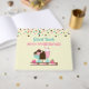 Libro de cumpleaños con tema de helados dulces. Confeti colorido en la parte superior. Ilustrado con un helado de chocolate, un sundae de 3 cucharadas con una cereza sobre la mesa y un flotador de fresa con crema batida. Fresas y cerezas. Fondo amarillo pálido. Los dulces y calientes dulces del verano.