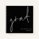 Grad White Script Black Graduation Guest Book. Perfecto para que sus invitados escriban sus buenos deseos, este diseño tiene un elegante guión fijo para Grad diagonalmente al frente y el resto del texto puede ser fácilmente personalizado, incluyendo las palabras en la portada trasera. Los colores del texto y del fondo se pueden cambiar si se desea a través de la edición posterior.