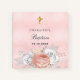 Un fondo de aspecto metálico gradiente rosado con flores doradas y blancas subió, follaje plateado y cruz dorada. Personalice y agregue un nombre y una fecha.