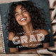 Libro de invitados de graduación con el nombre y el año del graduado arriba y abajo del texto "grado" con un divertido y moderno tipo de letra como superpuesto blanco sobre la foto de tu personalizado.