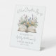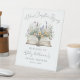 Una encantadora señal de bienvenida para una fiesta de despedida de soltera inspirada en el tema "Un nuevo capítulo comienza". Centrado en la señal hay un libro abierto de acuarela con flores silvestres y vegetación que se derraman, con tonos suaves de rosa, amarillo, azul y púrpura para un aspecto ligero y alegre.
