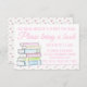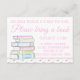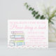 Un chica lleva un libro con libros de acuarela color pastel sobre un fondo floral color agua rosa. Éstas traen una tarjeta de libro que se personaliza fácilmente con el texto de su elección en el estilo de letra que prefiera. Simplemente envíe su invitación.