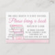 Un chica lleva un libro con libros de acuarela color rosa pastel y gris sobre un fondo de rayas de color rosa bonito. Éstas traen una tarjeta de libro que se personaliza fácilmente con el texto de su elección en el estilo de letra que prefiera.