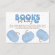 Animar a los huéspedes a traer un gran placer con esta adorable tarjeta de gabinete "Books for Baby", que incluye un trío de calabazas azules de color agua suave. Una encantadora adición a cualquier ducha de bebé de otoño, esta tarjeta le pide suavemente un libro para niños firmado en lugar de una tarjeta de saludo tradicional. Una manera perfecta de construir la primera biblioteca del bebé con amor y recuerdos.