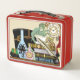 Dragón verde en una taza de té que está en un montón de libros. Sombrero superior, elixires, una pluma de plumas con tintero y un reloj con los engranajes mostrados están por todo el dragón.
