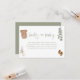 Este sabio boho verde Books para la tarjeta Baby tiene acuarelas pintadas a mano y es perfecto para enviar con sus invitaciones para la ducha de bebé. Edite fácilmente la mayoría de las palabras para que coincidan con su evento. Los colores de texto y fondo son completamente editables —> haga clic en el botón "Editar usando la herramienta de diseño" para editarlo.