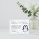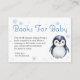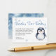 Animar un amor de toda la vida por la lectura con esta encantadora tarjeta de gabinete "Books for Baby" con un adorable pingüino acuarela y un fondo azul nevado. Una manera dulce de pedir a los huéspedes que traigan un libro en lugar de una tarjeta, este inserto se empareja maravillosamente con invitaciones a la ducha de bebé de invierno y le agrega un toque significativo a su celebración.
