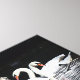 Tres cisnes blancos nadan en un lago y crean preciosas reflexiones en el agua.