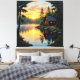 Eine friedliche Blockhütte steht am stillen Seeufer, umgeben von majestätischen Tannen. Die untergehende Sonne taucht den Himmel in warme Farben, während sich das Licht im Wasser spiegelt. Ein Ort der Stille, der Geborgenheit und des Rückzugs aus der Welt – fast wie aus einem Märchen.