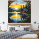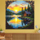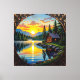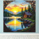 Eine friedliche Blockhütte steht am stillen Seeufer, umgeben von majestätischen Tannen. Die untergehende Sonne taucht den Himmel in warme Farben, während sich das Licht im Wasser spiegelt. Ein Ort der Stille, der Geborgenheit und des Rückzugs aus der Welt – fast wie aus einem Märchen.