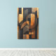 Arte abstracto geométrico en tonos dorados, bronce y negro con texturas metálicas. Formas circulares y rectangulares crean una composición dinámica y elegante. Estilo Art Déco contemporáneo perfecto para decoración moderna, oficinas y espacios sofisticados. Sofisticación atemporal en cada detalle geométrico.