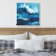 This canvas print features a dramatic, expressionist design that captures the power of a crashing wave. Created to mimic the thick, textured look of a palette-knife oil painting (impasto), it blends deep navy, vibrant teal, and crisp white foam.
