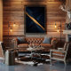 A sophisticated abstract composition blending geometric lines with deep blue tones and luminous golden accents. This artwork conveys elegance, movement, and modernity, making it perfect to elevate any space with a refined and contemporary touch.