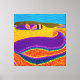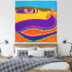 ¡Transformen sus paredes con la belleza del arte aborigen estilizado! Sumergirse en un mundo de colores exuberantes, animales míticos y aguas encantadoras. Colores morados, amarillos y azules.