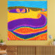 ¡Transformen sus paredes con la belleza del arte aborigen estilizado! Sumergirse en un mundo de colores exuberantes, animales míticos y aguas encantadoras. Colores morados, amarillos y azules.
