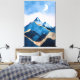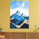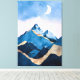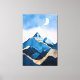 Un tranquilo paisaje montañoso minimalista con elegantes estrellas doradas y una luna creciente, que capta la tranquilidad de la noche de la naturaleza de una manera sencilla y atemporal.
