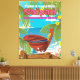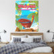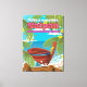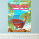Isla Saipan, afiche de viajes del Pacífico con flores, un bote de madera y el océano azul. Impresión del poster personalizado de la isla de Saipan.