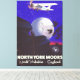 NorYork Moors, inglesa vintage style British travel afiche del paisaje de Yorkshire en la noche bajo una enorme luna llena.