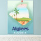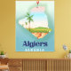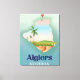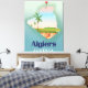 Afiche de viaje del Mapa Argelino con un mapa de la Nación Africana y un hermoso viejo avión de apoyo.