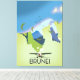 Afiche de viaje del mapa de Brunéi a la nación asiática.
