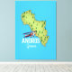 Lienzo Afiche de viaje ilustrado del mapa griego de Andro