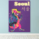 Afiche de viaje surcoreano en Seúl, afiche de la cosecha del dragón asiático.