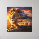 Lienzo African Lion & Zebra Sunset Canvas Art