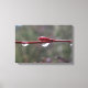 Fresh raindrops cling to a slender red branch, suspended against a soft, blurred background. The simple composition highlights texture, light, and the quiet detail of a moment after rain.