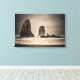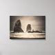 Una imagen tonificada de las Agujas, arañas rocosas encajonadas, en la playa de Cannon en Oregón, en un día nublado y tormentoso.
