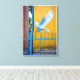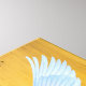 Una paloma blanca radiante extiende sus alas contra un audaz fondo amarillo y azul, simbolizando paz, esperanza y nuevos comienzos. El marcado contraste de colores realza la pureza de la paloma, creando un poderoso mensaje visual de armonía que se eleva por encima de los entornos cotidianos.