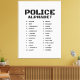 El diseño "Alfabeto policial indispensable de A a Z" es una referencia única y práctica al alfabeto fonético policial, con el objetivo de mejorar la claridad de la comunicación. La policía lo utiliza con frecuencia para evitar confusión cuando se escriben términos, especialmente por teléfono o radio. Aprender este alfabeto aumenta tu capacidad de comunicarte eficazmente en situaciones importantes.