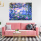 Claude Monet fue uno de los fundadores de la pintura del impresionismo francés en paisajes al aire libre. Esta es una de sus muchas pinturas de estanque de nenúfares con agua de jardín que muestran el reflejo desde el cielo, con ramas de sauce llorosas colgando por encima del estanque, y flores de lirio flotando en el agua.