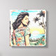 Una invitación maravillosa, con un chica sonriente, para entrar en una naturaleza soñadora, colorida y luminosa. Una ventana en un paisaje maravilloso.