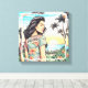 Una invitación maravillosa, con un chica sonriente, para entrar en una naturaleza soñadora, colorida y luminosa. Una ventana en un paisaje maravilloso.