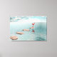 A minimalist surreal artwork featuring a solitary flamingo standing on stepping stones above calm water, surrounded by open space and soft light. The composition evokes themes of solitude, balance, patience, and inner calm. With its clean lines and tranquil atmosphere, this piece is ideal for modern interiors, contemporary wall art, and collectors drawn to quiet, contemplative visuals.