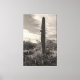 Una fotografía monocromática muestra un cactus alto de saguaro en un paisaje desértico. El cactus es el foco central, con su textura de lazo y brazos redondeados. El fondo está cubierto de un cielo turbio y de otra vegetación desértica, como pequeños cactus y arbustos. La imagen tiene un toque vintage debido a los tonos monocromos y la composición hace hincapié en la cruda belleza del entorno desértico.