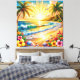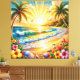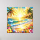 Lienzo Amanecer de playa tropical con palmeras, olas