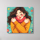 Un lindo y caprichoso chica de estilo de arte folclórico en un cálido y acogedor suéter dándose un abrazo. Recuerden que el amor propio es importante con este carrito de bonito.