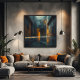 An abstract architectural space defined by monumental walls in cool and oxidized tones, where golden light breaks the silence. This artwork conveys depth, introspection, and visual strength, perfect for contemporary interiors that value conceptual art, minimalism, and emotional impact.