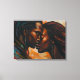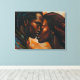 Love in Shades of Brown (Amor en tonos de marrón) presenta a un hermoso hombre negro y una mujer negra compartiendo un beso. Creado en un estilo abstracto que enfatiza el resplandor de su piel contra un fondo ámbar dorado con ligeros toques de azul y rojo que agregan profundidad a la pieza. Podría ser un boda maravilloso o un regalo de compromiso, o un punto focal para el dormitorio.